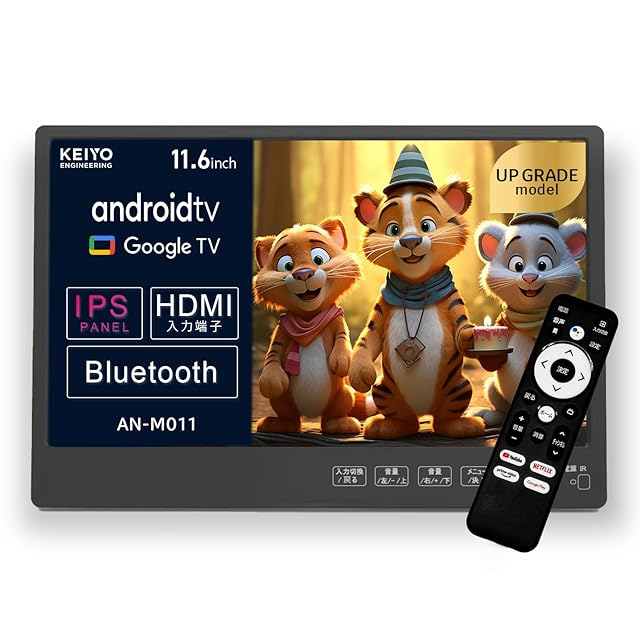 KEIYO 【ヘッドレストリアモニター】 11.6インチ IPSパネル搭載 広視野角Android TV 音声リモコン付き スマートリアモニターメーカー保証1年 AN-M011 2025年モデル (単品AN-M011)