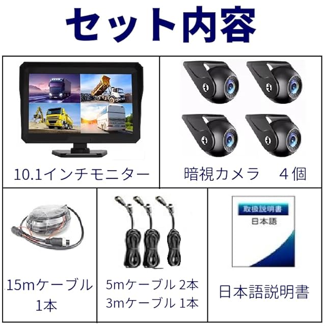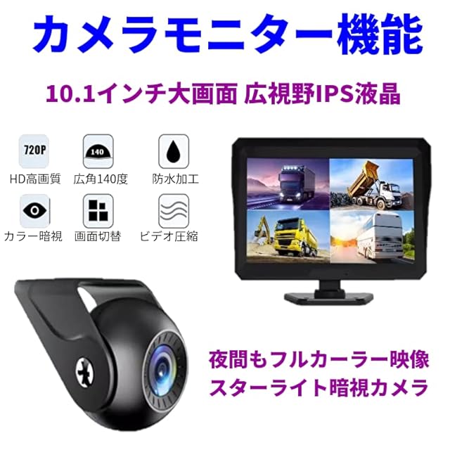 TK-SERVICE AHD バックカメラ 4カメラ モニターセット 10.1インチ ドライブレコーダー機能 前後同時録画 IPSモニター 720P 12V/24V対応 ガイドライン表示 正像鏡像切替可能 ノイズ対策 タイムラプス 防水 日本語説明書
