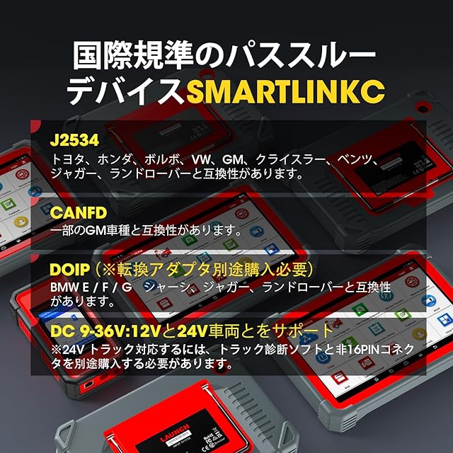 【J2534 / CANFD対応】強力なワイヤレスVCIコネクタでもあるSmartlink CはLAUNCHがJ2534 / CANFDプロトコルを統合して開発され、優れた互換性はトヨタ、ホンダ、フォルクスワーゲン、GM、クライスラー、ベンツ、ジャガー、ランドローバー、GE、BMW E / F/GシャーシのECUにアクセスし、データとOEプログラミングのダウンロードができます。この一台で数多くのブランドの自動車に対応し、自動車整備工場のビジネスの拡大に貢献できます。