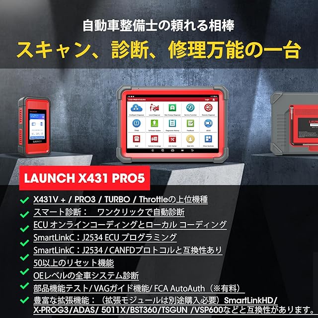 LAUNCH X431 Pro5 obd2 診断機 日本語 国産車 bmw ベンツ コーディング 自動車 obd スキャンツール 50以上リセット 故障診断機 全車 診断 tpms abs srs dpf immoイモビライザー J2534プログラミング