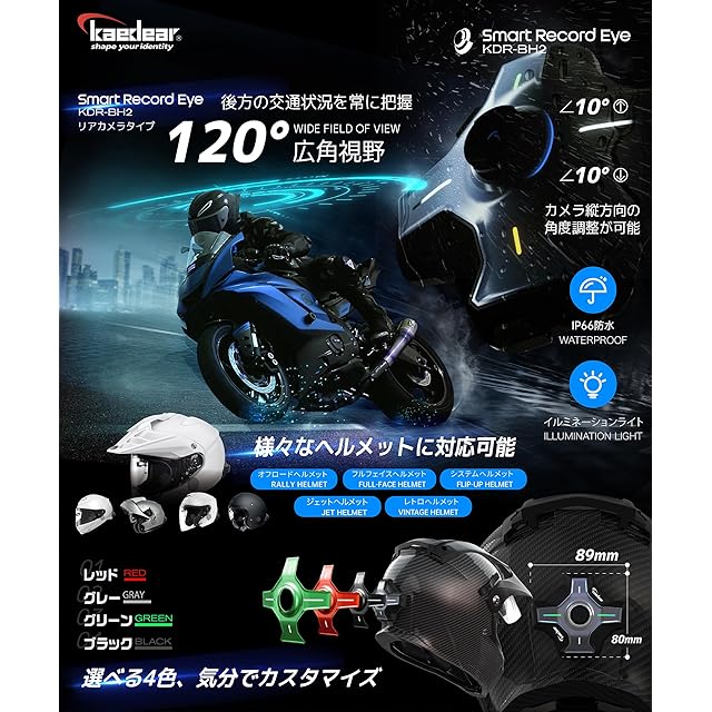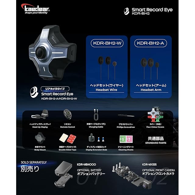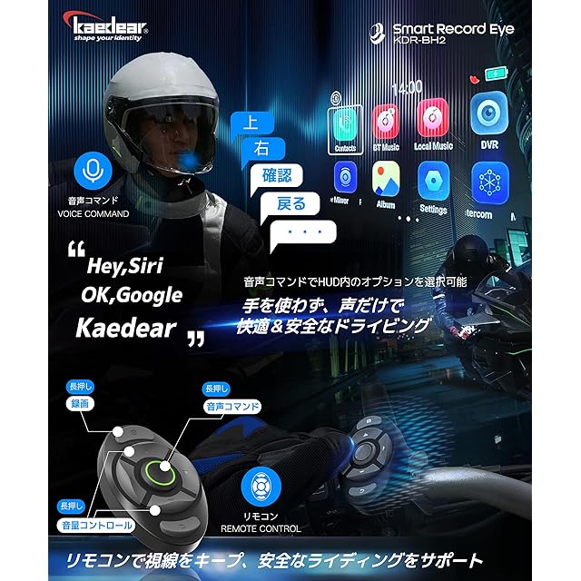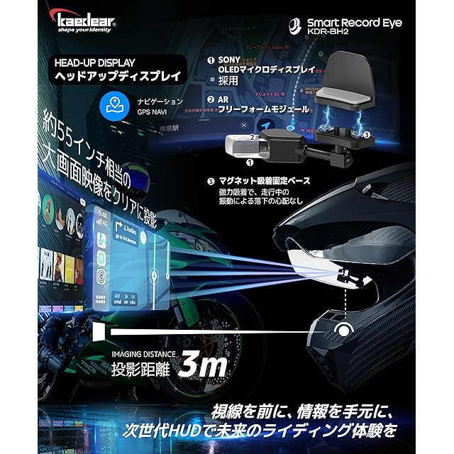 Kaedear(カエディア) バイク スマートモニター ヘルメット インカム ドライブレコーダー ナビ ヘッドアップディスプレイ カープレイ/アンドロイドオート DFS スマートレコードアイ KDR-BH2 (アームマイク)
