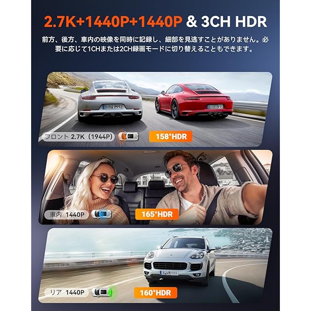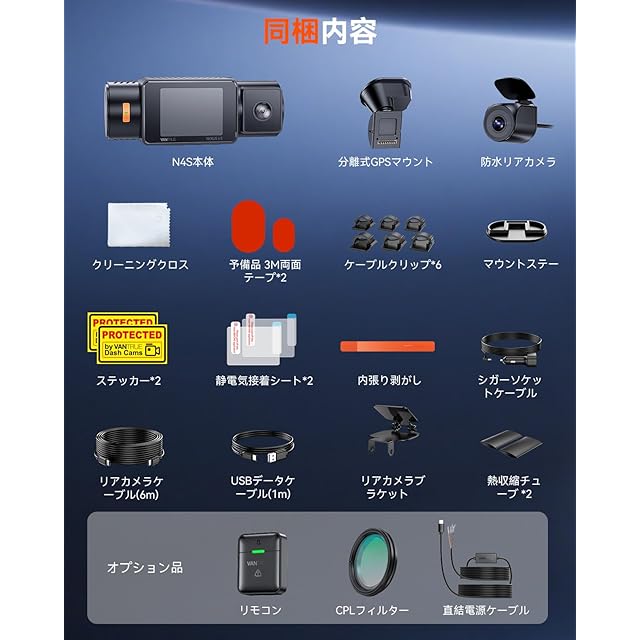 「2025革新版」VANTRUE N4S 3カメラドライブレコーダー WiFi搭載 PlatePix技術 STARVIS 2 HDR暗視機能強化 2.7K+1440P+1440P 前後カメラ ドラレコ 24時間駐車監視 GPS内蔵 日本語音声操作 360°全方位保護 車載カメラ 最大1TBカード(別売)対応 (N4S)