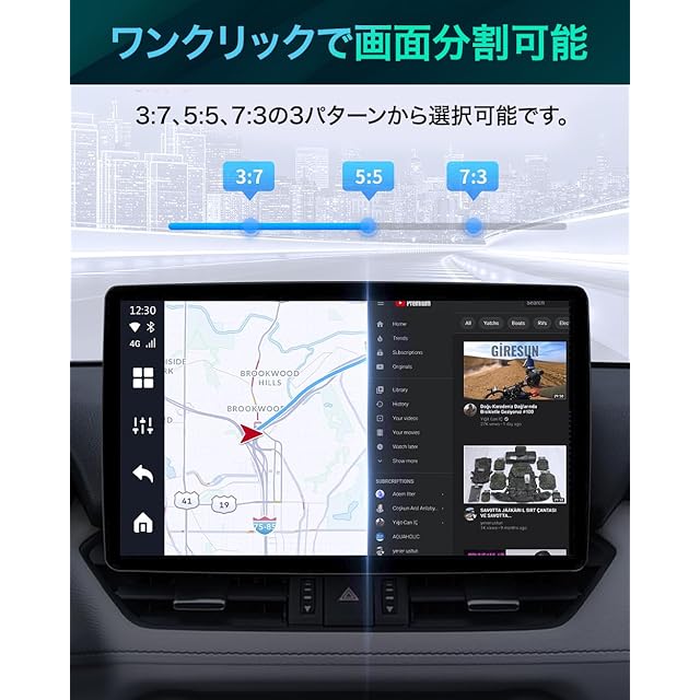 【Android12システムを搭載】あらゆるAndroidアプリに対応しております。オンライン動画はもちろん、様々なアプリ・ゲームを車内で楽しむことができます。画面分割表示も可能です。