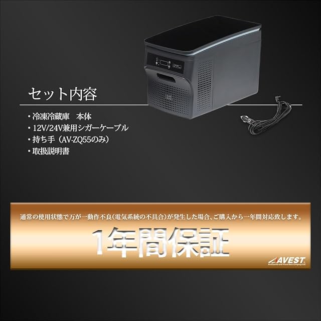 【商品セット内容】冷凍冷蔵庫 本体、12V/24V兼用シガーケーブル、取扱説明書