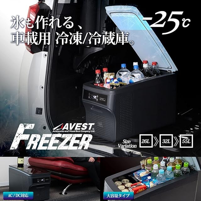 AVEST 車載冷蔵庫 26L -25℃~20℃ 急速冷凍 ポータブル DC12V/24V 電源 車載用冷蔵冷凍庫 LCD温度表示 静音 家庭/業務用 車中泊 キャンプ 台風 災害 緊急時適用