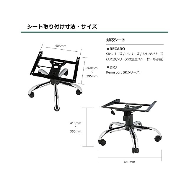 【訳有り】【アウトレット】レカロ向け オフィスチェアー変換ベースキット SR/LX 対応品 ゲーミングチェア 4Dアームレスト付【オフィスキット4D】 (Chrome)