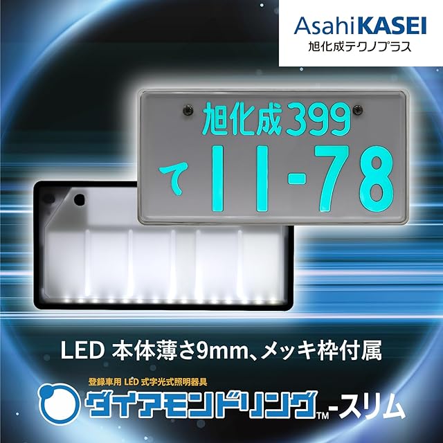 旭化成テクノプラス ダイアモンドリング-スリム 字光式ナンバープレート メッキ枠付属 車検対応 (12V仕様, 2個セット)