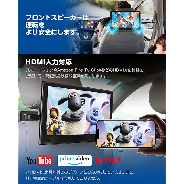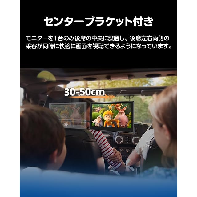 【センターブラケット付き】モニターを1台のみ後席の中央に設置し、 後席左右両側の乗客が同時に快適に画面を視聴できるようになっています。【フロントスピーカーは運転をより安全にします】スピーカーはフロントに設けられ、音声のドライバーの干渉を減らし、より安全に運転することができます。