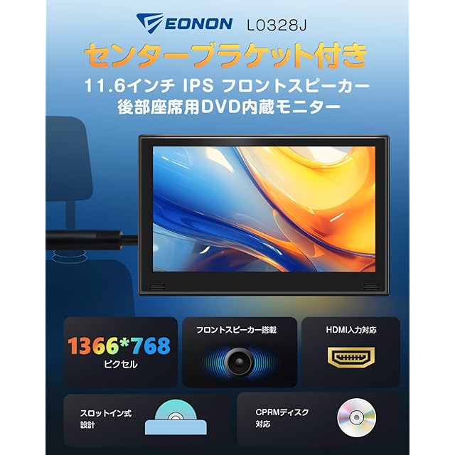 Eonon ヘッドレストモニター 11.6 インチ 大画面 リアモニター 車載 モニター 後部座席 ブラケット セット DVDプレイヤー センターブラケット 車載用 取り付け 簡単 IPS CPRM HDMI AV 入力 対応 (L0328J)