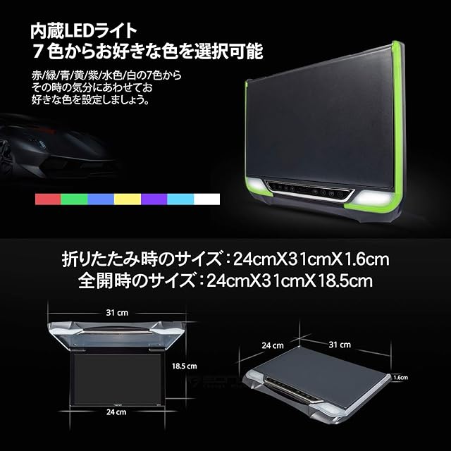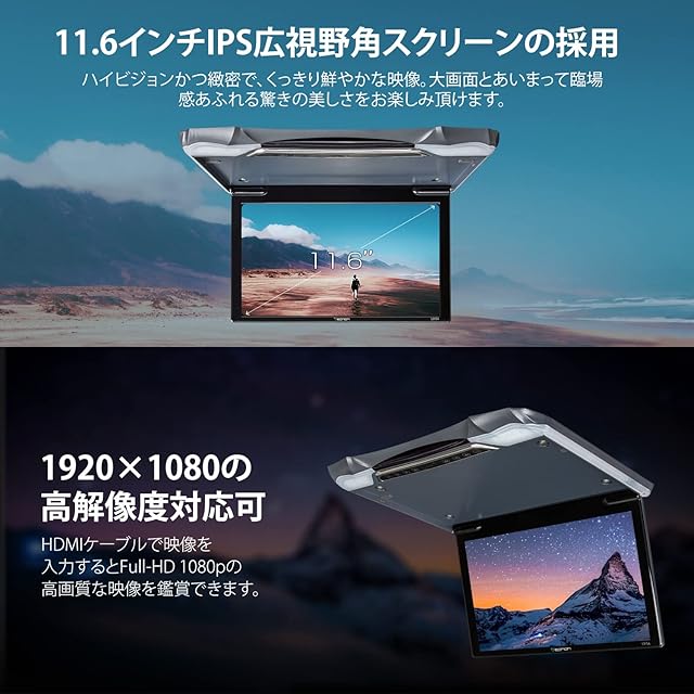 EONON フリップダウンモニター 1920*1080 11.6インチ HDMI入力 リアモニター 超薄型 (L0154) LEDライト付き IRトランスミッター内蔵 電源記憶機能 USB接続