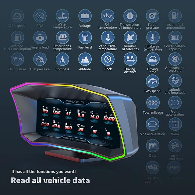 【商品の説明】新しいアップグレードされた車OBD LCD計器P4は、OBDを含む+ GPS +ターボメーター+勾配計+加速度計+ファントム周囲光多機能ディスプレイ、インターフェイスのテーマスタイルとテーマ周囲光の様々な、あなたは雰囲気を作成することができ、あなたの好きな色やインターフェイス、技術の完全な感覚に切り替えることができ、あなたに新しいドライビング体験をもたらす。