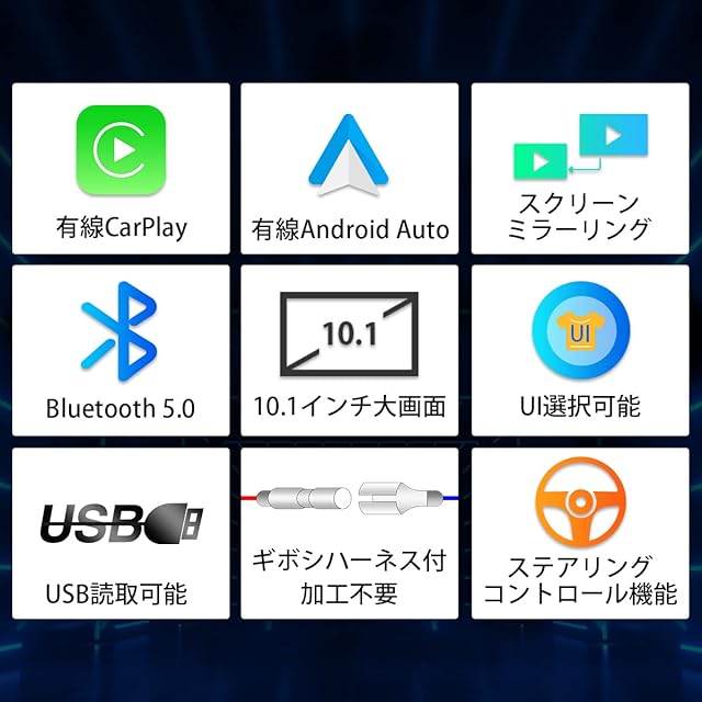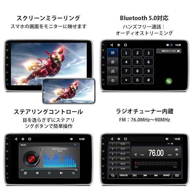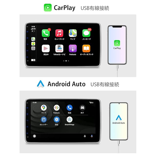 【☆有線CarPlayとAndroid Auto、有線ミラーリング】この2DINカーステレオは、有線CarPlayおよびAndroid Autoが対応可能。オプション品追加不要で、CarPlay とAndroid Autoからの音楽、ナビ、メッセージなどのアプリは、TL10YカーオーディオのHD大画面に表示され、利用できます。CarPlay / Android Autoを実行している間、携帯電話への充電もできます。また、AndroidおよびiOS用の有線ミラーリングもサポートします 。本機内蔵のアプリ(Phonelink)で、スマートフォンの写真、音楽、動画映像など様々のコンテンツをそのまま10インチ大画面で楽しめることができます。
