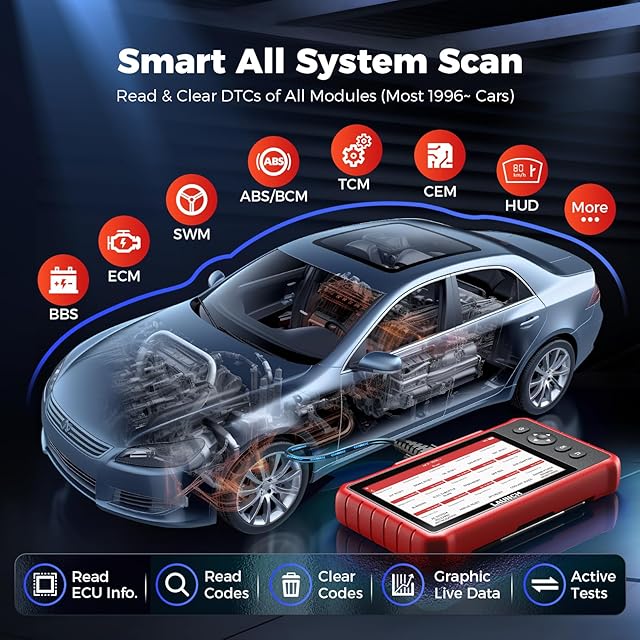 LAUNCH X431診断機と同様に、CRP919X Liteは双方向スキャンツールです。機械部品と電子部品を手動でアクティブにして、センサー、バルブ、ソレノイドをテストし、故障をすばやく特定して修復できます。例: ラジエーターファン、ライト、サウンドホーン、燃料ポンプのオン/オフ、ウィンドウの開閉、ミラーの操作、デバイスの加速、油圧制御、入口/出口バルブ、ブレーキの開放などをテストします。