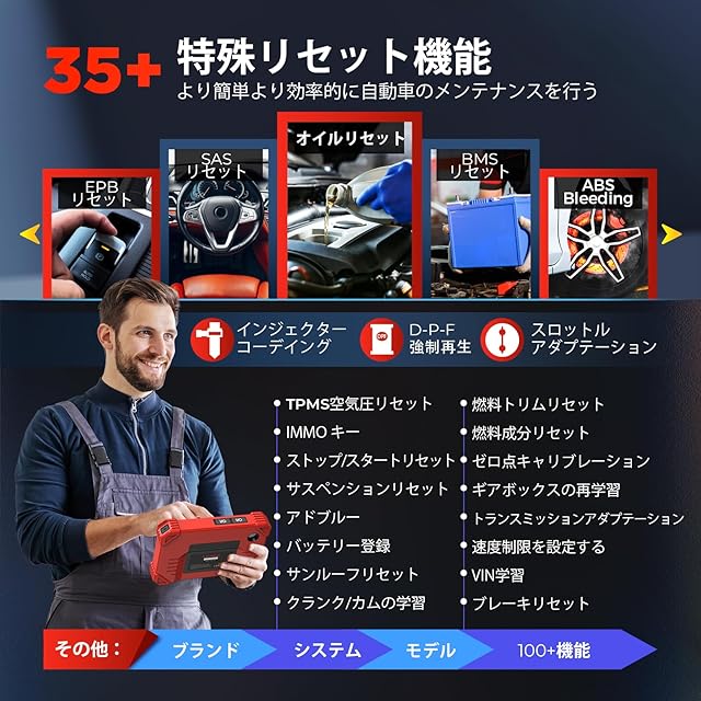 【35以上の特殊リセット機能】LAUNCH CRP919XBTのクールなカーアクセサリーには、最も複雑な車両に対応するための31以上のメンテナンスサービスが装備されています。 車両のマッチングが簡単なため、整備がかつてないほど簡単になりました。 デバイスのワンタッチ AutoVIN および AutoScan 機能により、隠れた問題の診断が簡単になり、時間とお金を節約できます。