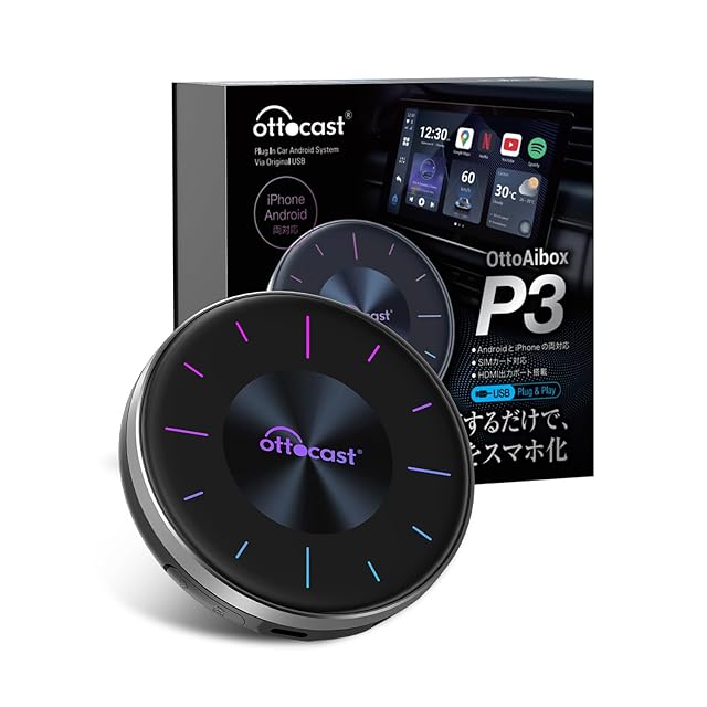 【公式】Ottocast OttoAibox P3 オットキャスト P3 CarPlay AI Box Android 12アタブター nano SIMカード/Micro SDカードスロット HDMI出力端子搭載 前席後席でYoutube Netflix どこでもディーガなど動画視聴可能