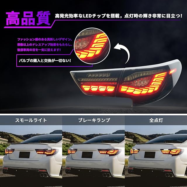 Archaic マークX 130系 テールランプ GRX130 GRX133 GRX135型 全LED ドラゴンスケール ベンツ スタイル オープニング機能 流れるウインカー搭載 左右4点セット スモークレンズ Taillights For Toyota Mark x 2012年~2020年