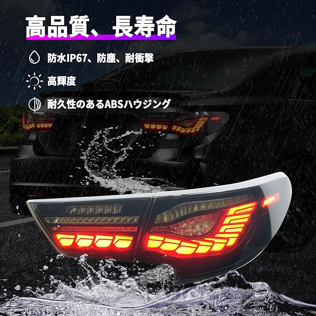 ✅【ライトの特徴】新型テールランプ、消灯時もスタイリッシュで注目度抜群。流れるウインカーとオープニングセレモニーを搭載して、圧倒的な存在感を演出し、後続車の視線を釘付けにします。全てに高輝度LEDを採用して、LED性能が十分に保証され、安定した発光が可能です。防水加工済みで、日常の使用においても安定しており、様々な天候でも安全な運転を確保します。