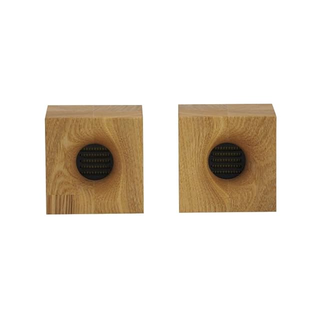 集成材は積層接着したものの内部をくり抜き、 職人が1つ1つ丹念を込めて手加工で研磨して仕 上げております。ユニットの前にショートホーンを つけることで高域の音圧アップと、天然木材の優しい 響きが楽しめます。仕上げは天然塗料のオスモカラー で塗装しています。 ●Z501サイズ 幅約65mm*高さ65mm*奥行き60mm(突起含まない)/5KHz~50KHz 1つ約200g(※個体差があります)/最大入力15W/タモ集成材/滑り止め&制振パッド8個付き TANNOY製の同軸ユニット及び、メインスピーカーにリボンツイーターをご利用されている スピーカーとは一緒にご利用いただけません。