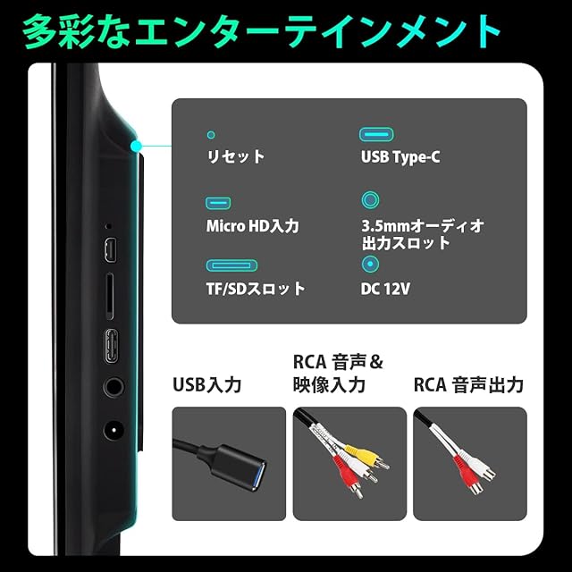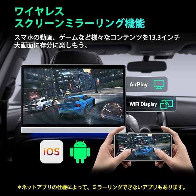 【☆多彩なエンタテイメント】★ミラーリング機能付、スマホの動画、ゲームなどを13.3インチ大画面にワイヤレスまで同期可能です。★HDMI入力対応可、ゲーム機、地デジ、デジカメラなど本機のHDMI入力端子に接続し、ビデオ、写真、音楽様々のコンテンツを大画面で楽しめます。★ RCA入力対応なので、付属のRCAケープルを接続して、ナビ/チューナーからのアニメ、テレビ番組も鑑賞でき、お気に入りの音楽や動画をいつもお楽しみいただけます♪