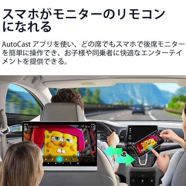 【☆スマホがリモコンになれる・最新LED・20UI切替】】AutoCast アプリを使い、どの席でもスマホで後席モニターを簡単に操作でき、お子様や同乗者に快適なエンターテイメントを提供できます。 色が流れるように変わる最新LEDバックライトを搭載して、車内空間を綺麗に演出して視覚を満足させます。また、20種類のUIテーマが搭載、個人のお好みに合わせて、最適なUIテーマが選びことができます。