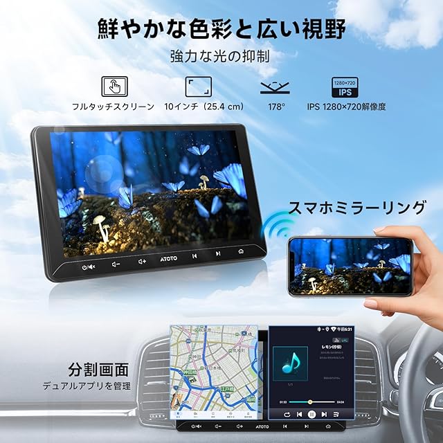[10.1インチ] ATOTOZONE A5L Android 2DIN ディスプレイオーディオ、アンドロイドナビ、Wi-Fi/BT/USBテザリングに対応、カーステレオBluetooth、Android Auto&CarPlayワイヤレス・有線 、内蔵24B-EQ DSP、2G+32G、MirrorLink、FM/AM、USB/TF動画再生、GPSトラッキング、バックカメラ連動、ステアリング制御