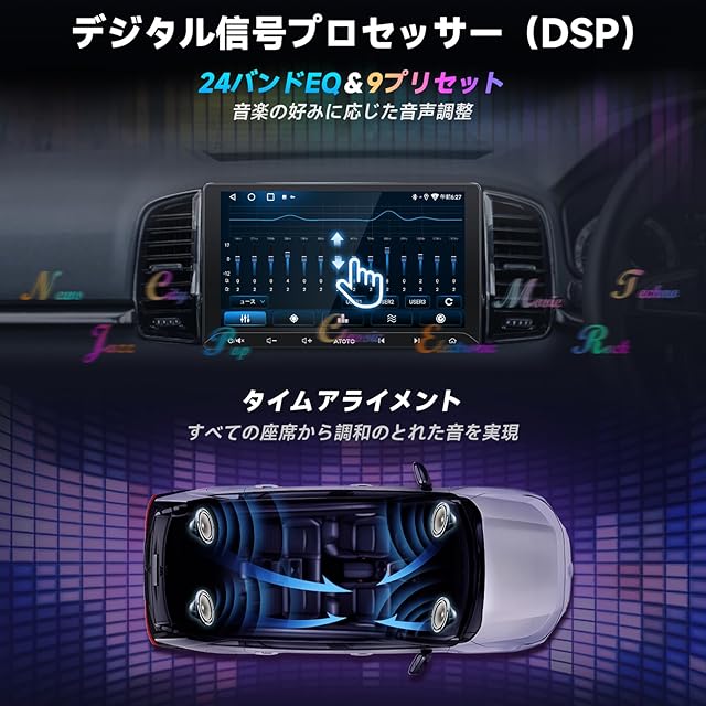 アップグレードされたDSP:A5 Liteディスプレイオーディオは、内蔵アンプ(ピーク4x45W、RMS 4x24W)と9プリセットの24バンドEQを備えています。デジタルシグナルプロセッサ(DSP)で音質を調整し、あなた好みのリスニング体験を提供