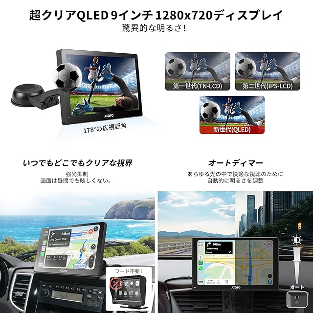 【3つの便利なナビゲーション方法】ヘッドユニットの交換なしで、ワイヤレスのCarPlayとAndroid Autoを直接利用しましょう。 (1) オンラインマップ用のCarPlay/Android Autoを使用するか、(2) P9の内蔵GPSでオフラインナビゲーションを利用します。車のスピーカーを通じて放送される音声案内は、リアルタイムの交通更新と最近の道路調整を提供し、毎日の運転をスムーズにします。 (3) 遠隔地や村々のためのオフラインマップも利用可能です。CarbitLinkで互換性のない多くのアプリをスクリーンにキャストできます。