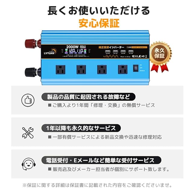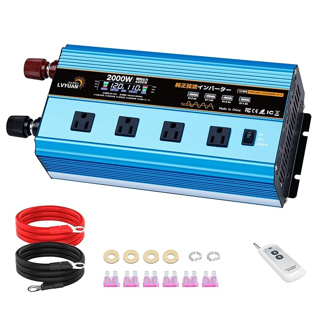 LVYUAN(リョクエン) 正弦波インバーター 12V/2000W(瞬間4000W) DC12V(直流) AC100V(交流) 変換 50HZ 60HZ切替 車中泊/太陽光発電/防災対応 緊急時で大活躍 停電の対策!1年 無料交換+永久修理保証 日本語説明書付