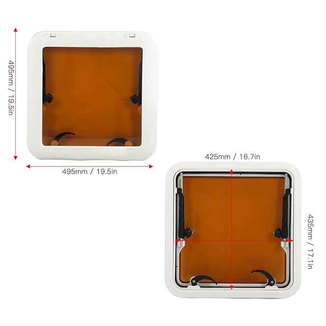 ボート ポートホール ウィンドウ ポートライトハッチ 495x495mm 頑丈なABS強化ガラス 防水 シールド 0-160°開口 ボート ヨット RV用 ウィンドウ スクエア プッシュアウト デッキ ハッチ ポートホール スカイライト エスケープ ウィンドウ ボート ヨット 航海 RV用