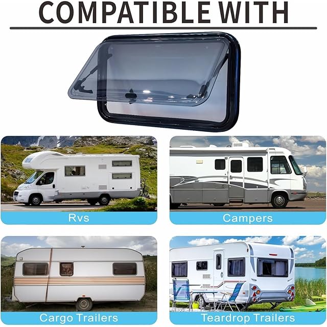【頑丈な構造】窓のフレーム全体はアルミニウム合金でできており、耐酸化性を確保するためにすべて黒色の塗料でコーティングされており、全体のリングは防水ゴムでしっかりと密閉されています。取り付け固定フレーム、フラット取り付けが付属しています。RV、キャンピングカー、モービルホーム、および窓を取り付ける必要があるその他の場所に適しています。