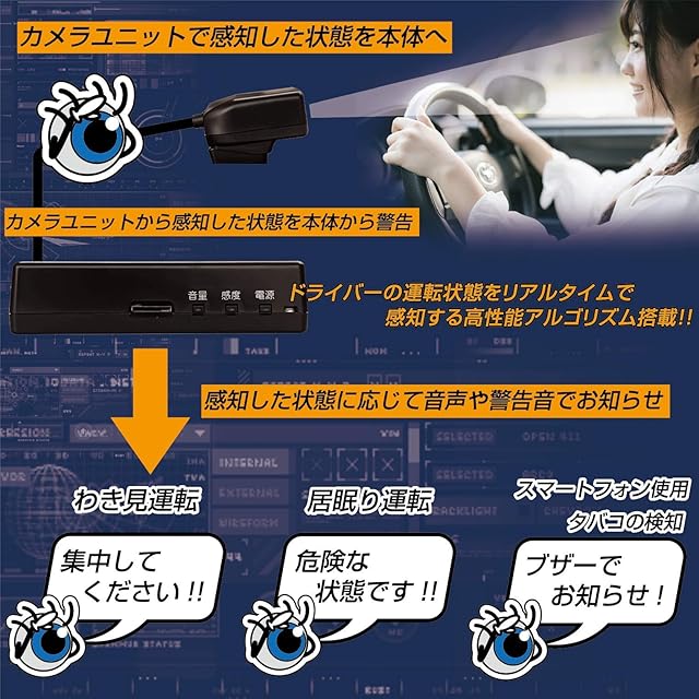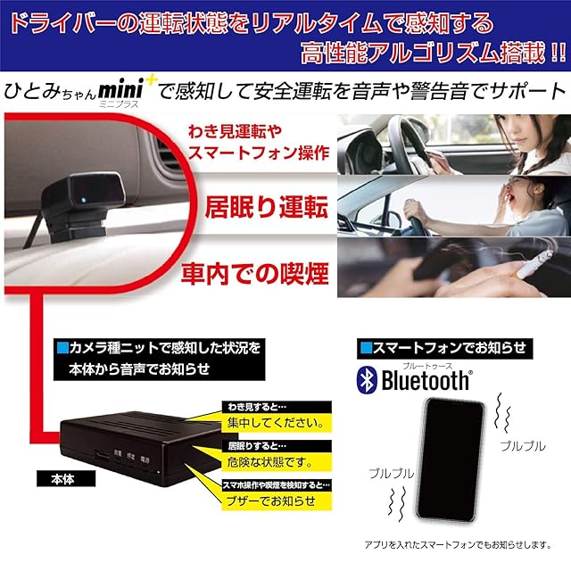 KEIYO 【ひとみちゃんmini+ 居眠り運転対策機器】 「居眠り運転」「わき見運転」「スマートフォン操作」「車内での喫煙」の4つを感知 マスクをつけている状態でも認識可能 スマホ連動で注意喚起 居眠りウオッチャー (ひとみちゃんmini+) AN-S066Ⅱ【公式ショップ】