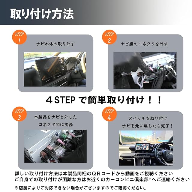 【取り付け簡単】カプラーオンなので、取り付けはカーナビと純正配線の間に本体を差し込むだけ!そのため取り外しも簡単!同梱している取り扱い説明書記載のQRコードを読み込めば取り付け手順を動画で確認することができます。