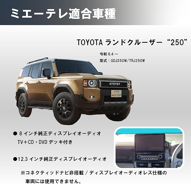 【適合車種】トヨタ ランドクルーザー 250 型式:GDJ250W / TRJ250W ※ガソリン/ハイブリッド共通(コネクティッドナビ非搭載車を除く)