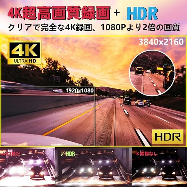 【4K超高画質録画、高効率ビデオコーディング (HEVC) H.265採用】 最新のAS-5 Proドライブレコーダーは4K(フロント)解像度での高い画像認識・検知性能と低照度性能の両立を実現しました。4K解像度の高画質により、映画を見るような体験を提供します。SONY-IMX415センサーという技術を採用しており、高感度検出器によるわずかな光しかない夜間やトンネル内での暗い場所でも高画質な画像と映像を記録することができます。劣化や変形の少ない光学6層ガラスレンズは光透過率が高く、鮮明で鮮やかな映像を捉えます。雨天、霧、曇りなどの悪天候でも前面衝突や後車追突などの交通事故の現場をクリアに記録します。HEVC では4Kおよび高ダイナミックレンジが実現される HEVCコーデックを使用すると、AVC(H.264)と同じ帯域幅ではより品質の優れた動画が配信でき、同じ品質の動画はAVC(H.264)と比較して半分の帯域幅で配信できます。