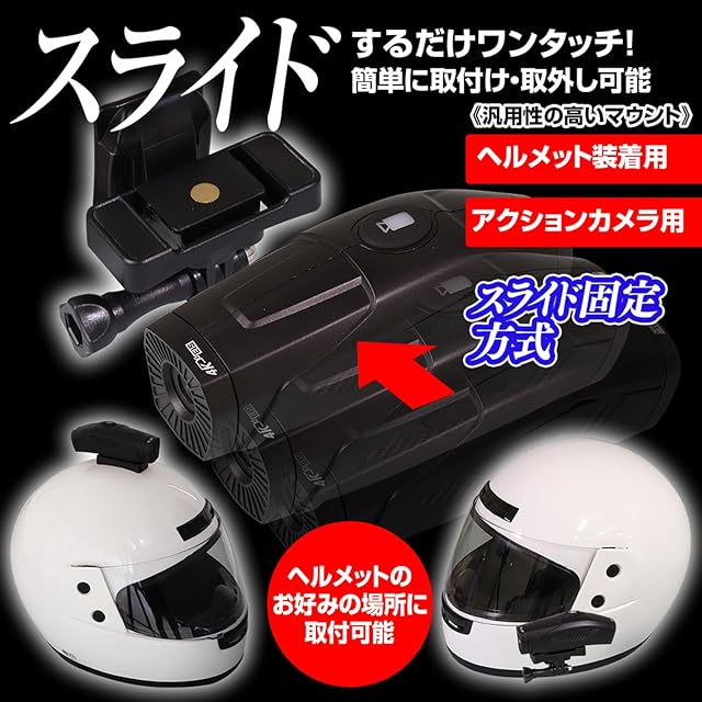 【スライドするだけワンタッチ!簡単に取付け・取外し可能】 簡単に取付/取外しできるスライド固定方式。 ヘルメット装着マウントやアクションカメラ用マウントがあり、 取り付けの汎用性バツグン。