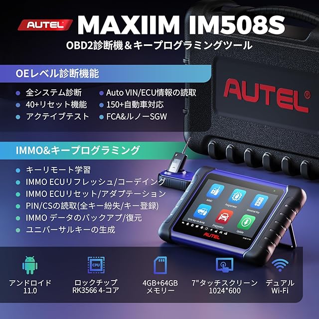 【最も買う価値のあるIMMOツール】Autel IM508Sは、市場で最もコストパフォーマンスの高いIMMOツールであり、プロのキーフォブプログラミングツールであるだけでなく、優れた双方向故障診断機でもあります。 IM508sの最新バージョンは、新しい体験をもたらします: プロレベルのIMMO&キーフォブプログラミングアクティブテスト全システムの診断28以上の特殊リセットサービスより広い範囲をカバーできます。 ワークショップや整備工場、整備士、DIY者に最適な製品です。