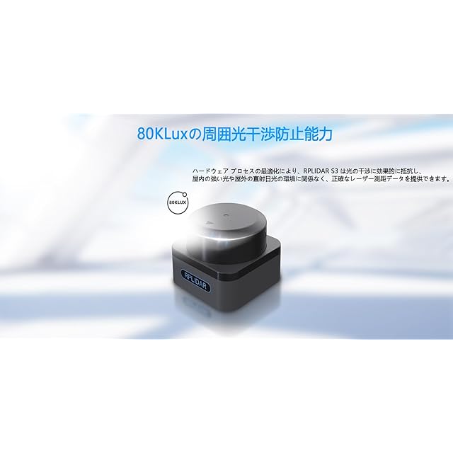 【高い安全性能】RPLIDAR S3 は、クラス 1 レーザー安全基準を満たし、人間の目の安全レベルに達する変調パルス低出力赤外線レーザー発光光源を使用します。