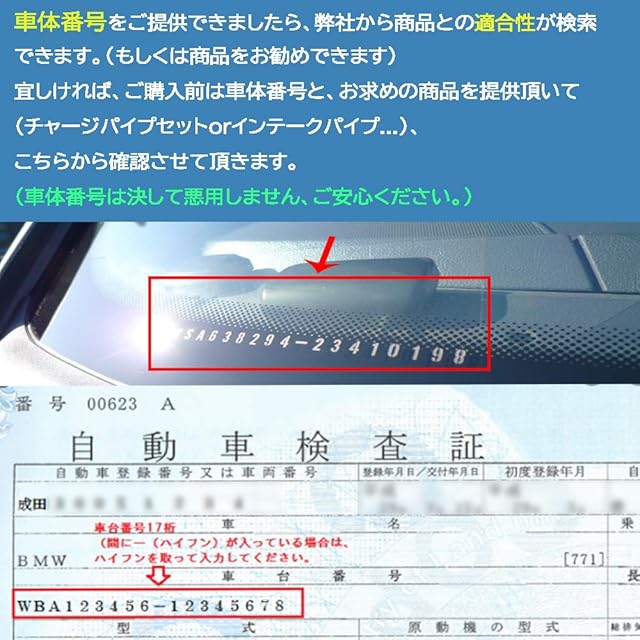 ※お車との適合性が疑問にあったお方は、ご購入前に、お気軽にご連絡ください。お問い合わせの際、”車体番号”とご購入したいパイプのASINコード(もしくは商品のタイトル)を一緒にご提供お願い致します。こちらから適合性を確認できます。
