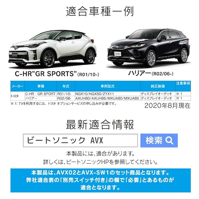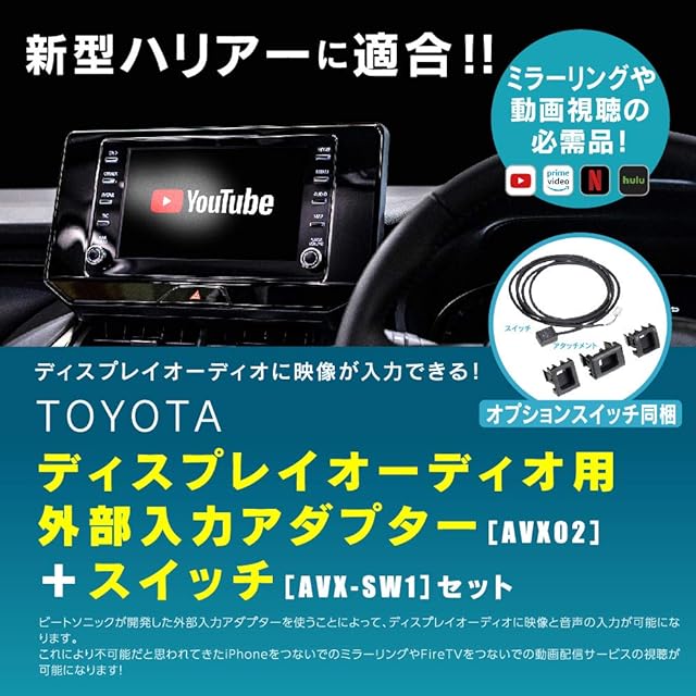 ビートソニック TOYOTA ディスプレイオーディオ用 外部入力アダプター AVX02 +AVX用オプションスイッチ AVX-SW1のセット品です。 トヨタ ハリアー/C-HR GR SPORT