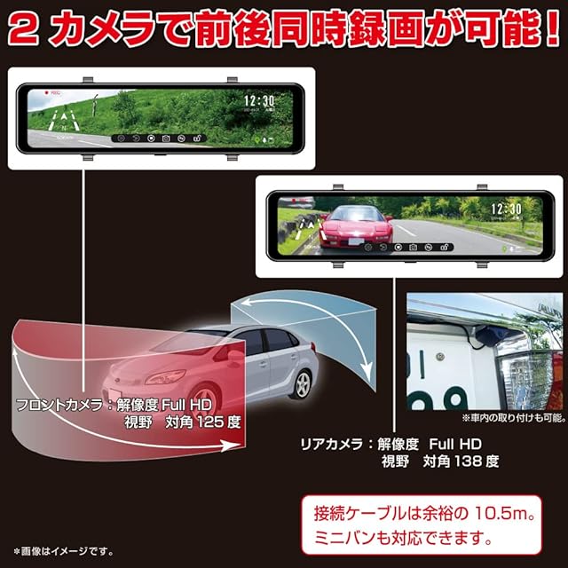 ■信頼の日本製:3年保証。 大型液晶モニター搭載:10.88型大画面ミラーで従来のモニターよりも可視範囲が拡大 ■高解像度:FULL HD200万画素の高解像度CMOSセンサーを搭載 ■タッチスクリーン操作:操作はスマートフォンと同じように画面上をタッチ、上下スライド、左右スライドで操作します