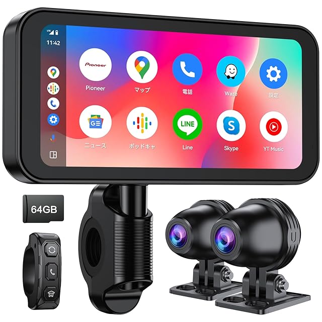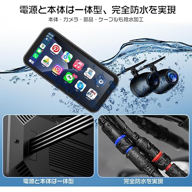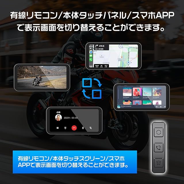 Changer ディスプレイオーディオ スピーカー バイク用ドライブレコーダー Carplay/Android Auto対応 バイクドラレコ 6.25インチ液晶タッチ WiFi搭載 スマホ連動 自動明るさ調整 IPX7防水防塵規格 耐熱耐久耐衝撃性 エンジン連動 煽り運転防止 通話/音楽再生/ナビゲーション対応 インカム/BTイヤホン対応 取付ホルダー/有線リモコン 技適取得済み