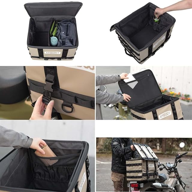 商品の特徴: ・バイクの車体カラーに合わせて選べる、カラーバリエーションの豊富なリヤボックス ・フタの上にも荷物が載せられる ・カラビナなどをかけられるループがたくさん ・便利な仕切り板付き ・便利な内ポケット ・雨の日にうれしいレインカバーが付属 ・4つのバックルで簡単に付け外し ・折り畳んでの収納も可能
