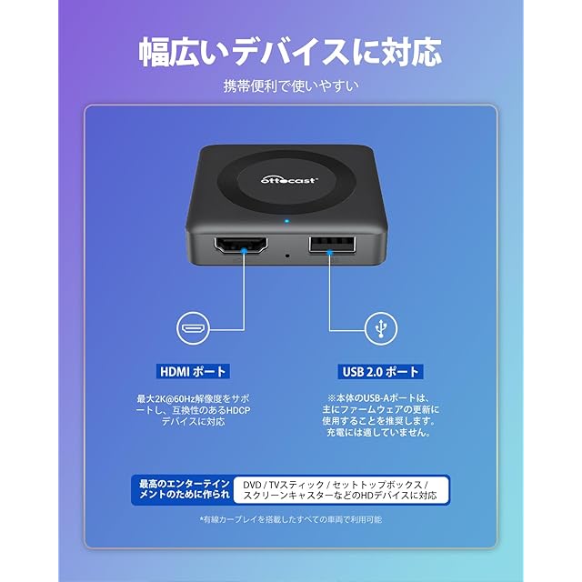 【技適認証済み】弊社はOTTOCAST工場直営店です。お客様からのご意見によって全社員が日々奮闘しています。私たちは常に商品品質の向上と不良率の低下に努めています。万が一、商品に不具合がある場合は、できるだけ早くAmazonのチャットでお気軽にご連絡ください。必ず最善の対応をいたします。技適認証済み:現時点では電波法を無視した違法な商品が出回っています。無線機能を有する製品には、技術基準適合証明(または工事設計認証)の取得が必要です。当製品は上記の技適認証を取得済みなので、安心してご使用いただけます。技適認証番号:201-220660