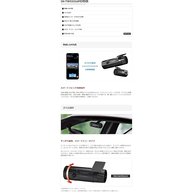 2022年発売 ユピテル 前後2カメラ ドライブレコーダー SN-TW9200dP 無線LAN内蔵 夜間も鮮明STARVIS搭載 SUPER NIGHTモデル FULL HD 録画、GPS&HDR搭載