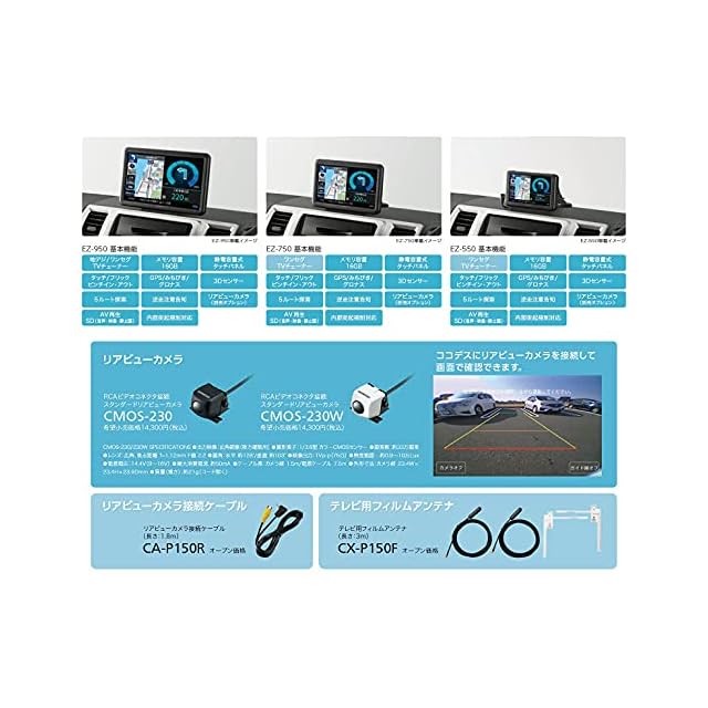リアビューカメラ接続ケーブル(別売:CA-P150R)を使用すると、別売のリアビューカメラ(CMOS-230/CMOS-230W)と接続ができます。