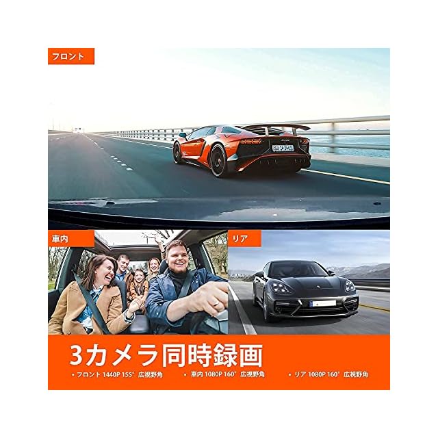 【業界トップ 3カメラ ドライブレコーダー 超広角 全方位保護】 タクシーやUBERの運転者に最適!前後をしっかり撮影しつつ、車内まで記録するので、近年話題になっている煽り運転、その他追突事故に合った時などどらいぶれこーだーの映像が大切な証拠となりますので、ついにVANTRUE N4 3カメラ付きのドライブレコーダーが開発されました。フロントカメラ155°、車内カメラ165°、リアカメラ160°で360度広角度によく近い超広角で、3カメラで1440P + 1440P + 1080Pで同時に記録しますので、高画質、全方位であなたとあなたの車を守ります。フロント+リア録画モードで2160P ( 4K ) + 1080Pで録画でき、フロントカメラ録画モードで3840*2160P(4K)にも達します。どちらの録画モードでも高精細でナンバープレートや道路標識を鮮明に撮影できます。自分を守る為の証拠映像として心強い。