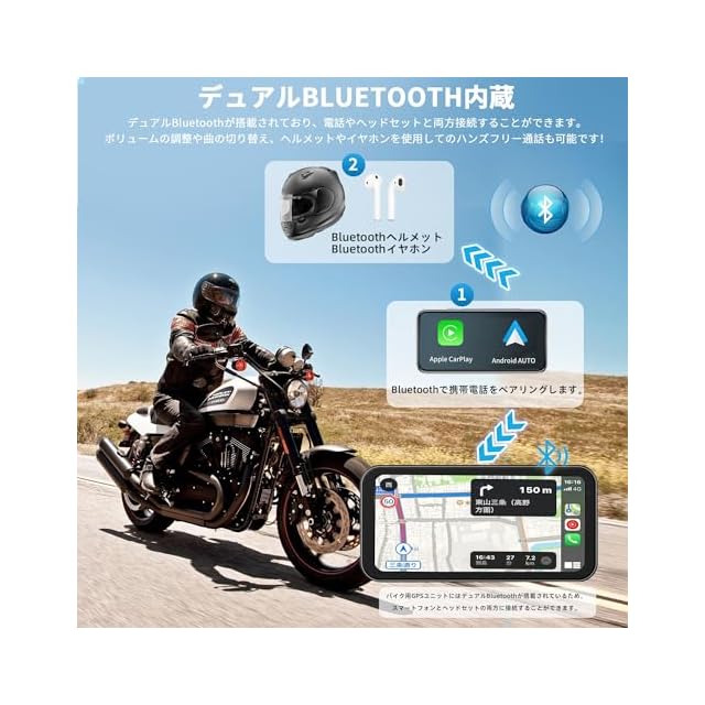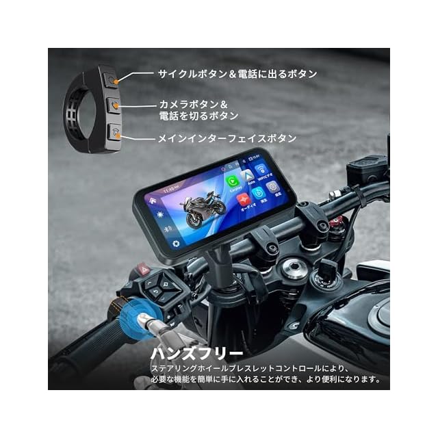 Carplay/Android Auto/WiFiビデオ対応なバイクドライブレコーダー&Bluetooth音声制御: バイク モニターはWiFiビデオ機能を搭載しており、専用のアプリを使用してスマホとデータをやり取りできます。無線接続でCarPlayやAndroid Autoを使用して、スマートフォンの機能をバイク用スマートモニターで表示し、運転中に音楽やナビゲーション指令、通話が可能です。SiriやGoogle Assistantなどで音声制御可能、画面に触れず簡単に操作できる。スマートフォンがBTイヤホン/インカムに接続されている場合、カープレイの音声はイヤホンやインカムから出力され、快適なドライブ体験を提供します。(注意:本製品はiOS 10およびAndroid 11以上に対応。※SHARP/HUAWEIは使えません)