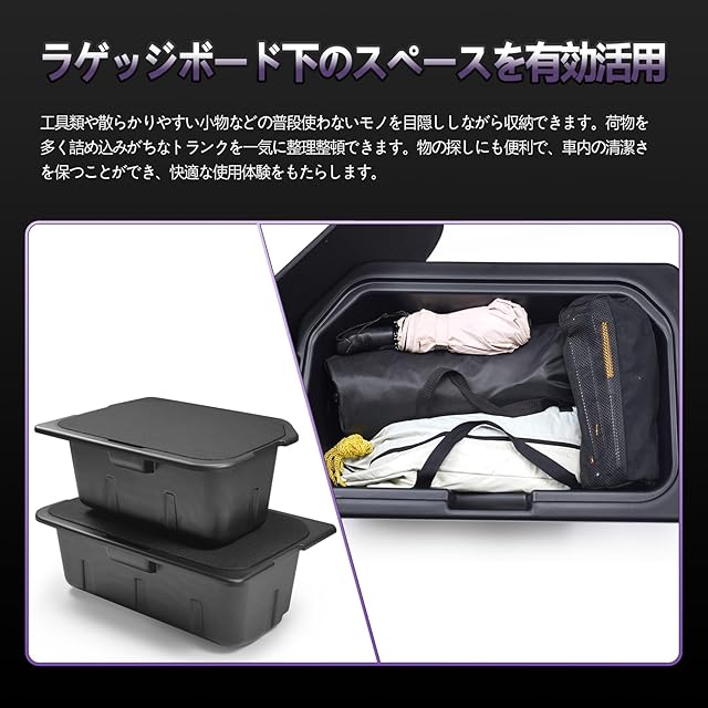 【ラゲッジボード下のスペースを有効活用】工具類や散らかりやすい小物などの普段使わないモノを目隠ししながら収納できます。荷物を多く詰め込みがちなトランクを一気に整理整頓できます。物の探しにも便利で、車内の清潔さを保つことができ、快適な使用体験をもたらします。