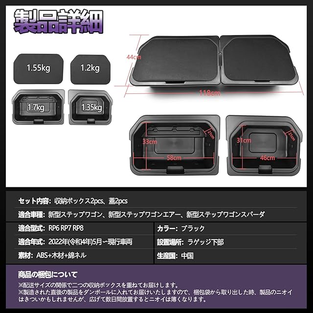 TELLIKA 新型 ステップワゴン RP6 RP7 RP8 増設荷室収納ボックス ラゲッジアンダーボックストレイ ラゲッジマット 荷室下 トランクマット ラゲッジルーム収納 ステップワゴンパーツ ステップワゴンアクセサリー ステップワゴン 小物収納