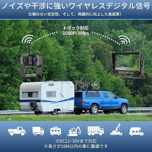 【安定したデジタル信号】今まで既存品のワイヤレスバックカメラ映像がそんなに安定性がないですが、こちらのアンテナ2本も搭載した無線バックモニターはポイントツーポイントデジタル信号を使用してるので、驚くほどの安定性を実現します。また近くに同じ製品があっても混線による心配もありません。